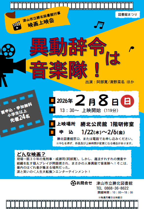 令和8年2月8日(日) 13:30~上映開始 (上映時間119分) 定員 先着24名 |
