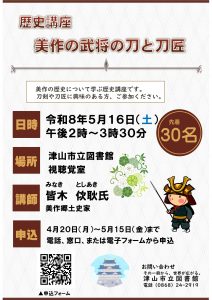 | 内容 | 美作の武将の刀剣と刀匠について学ぶ歴史講座 |